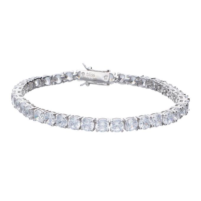 Productbeschrijving: Zilveren tennisarmband gezet met zirkonia. Het merk Bliss is afkomstig uit het modebewuste Italië en de verfijnde juwelencollectie bestaat uit ringen, colliers, armbanden en oorbellen in 18 karaat goud, zilver en staal. Dit zilveren item is vervaardigd uit het hoogste gehalte 0,925 zilver en is voorzien van het kenmerkende Bliss diamantje.