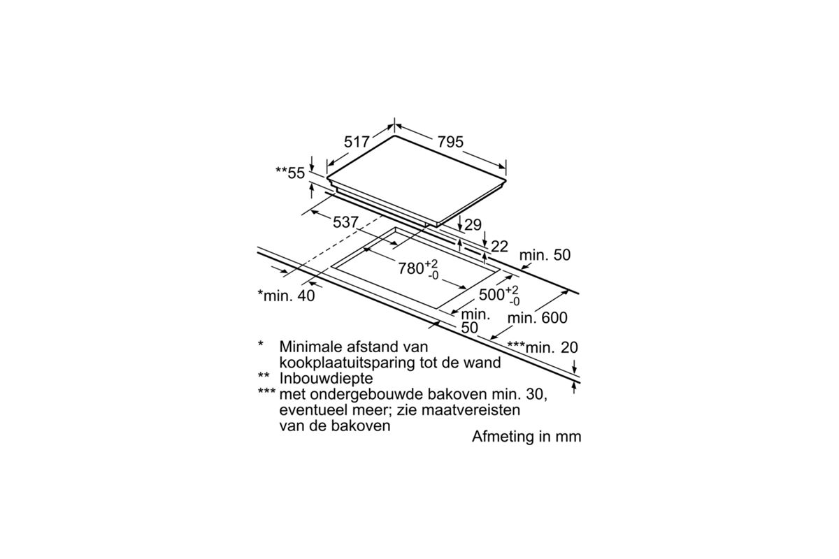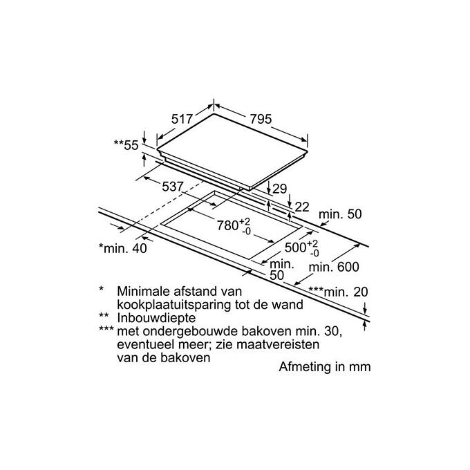 Afmeting: 79,5x51,7x5,5cm. Inbouwmaten: 78x50x5,5 cm