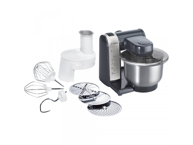 Productbeschrijving: Praktische alleskunner met een grote roestvrijstalen mixkom en groot assortiment aan accessoires. Naast de uitmuntende kwaliteit van de Bosch keukenmachines. Kunnen deze machines ook geheel naar wens uitgebreid worden met hoogwaardige accessoires, als die er niet al standaard bijzitten. Zoals een ijsmaker, maalwiel, universele mixer, deegmaker, vleesmolen en nog veel meer mogelijkheden.