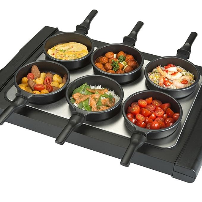 Productbeschrijving: De Bourgini Classic Fun-To-Cook 16.1020 is een multifunctioneel apparaat voor bakken, braden en koken aan tafel. De 6 aanwezige en kwalitatief hoogwaardige pannen zijn voorzien van een luxe Daikin antiaanbaklaag en extra lange steel, door de antiaanbaklaag zijn de pannen makkelijk schoon te maken. Krachtig is het apparaat bovendien met een vermogen van 1800 Watt: dus sneller en beter bakresultaat. De pannen hebben een doorsnede: 13 cm en een hoogte: 4 cm. De pannen zijn bovendien voorzien van een luxe Daikin antiaanbaklaag en extra lange steel en zijn vaatwasmachinebestendig. Inclusief 6 houten spatels en aan/uit-lampje. Geschikt voor 6 personen.