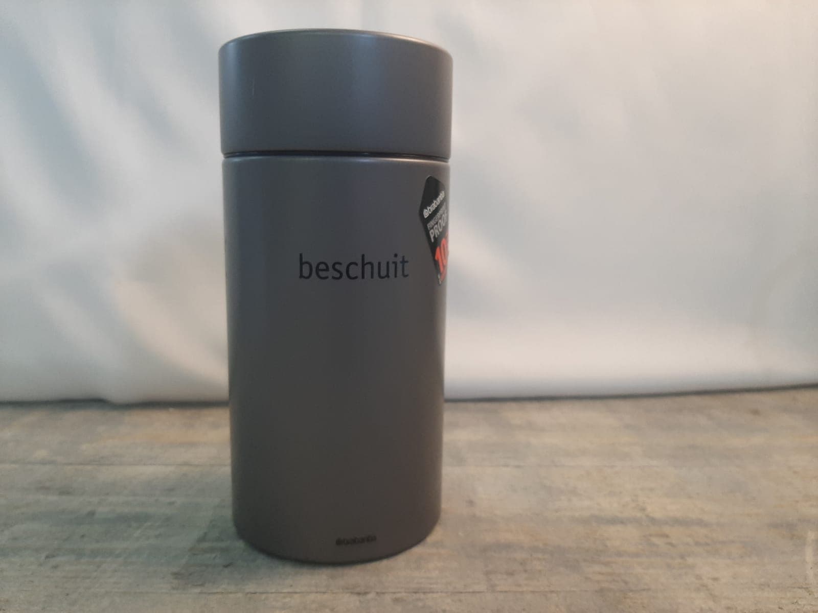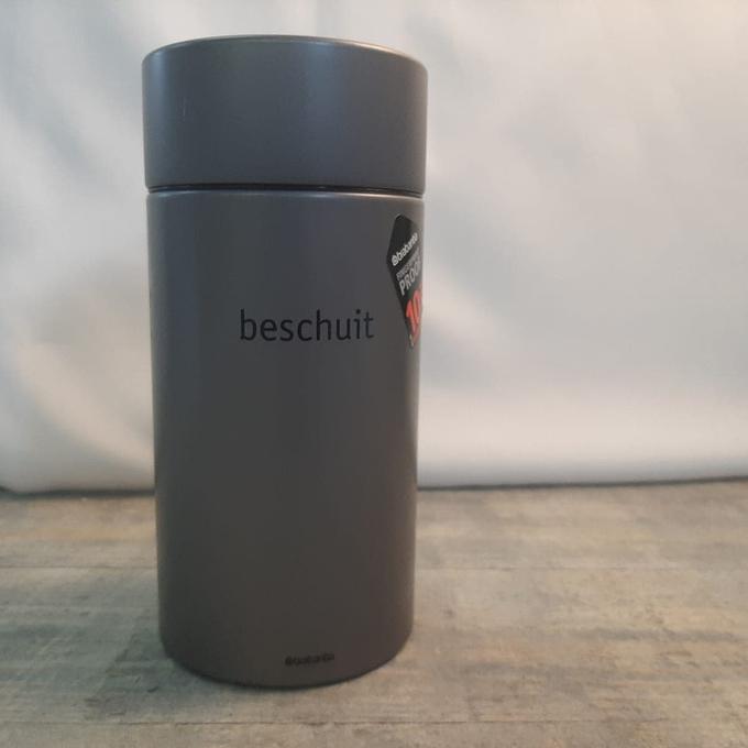 Productbeschrijving: Deze Brabantia Beschuitbus met een inhoud van 1,7 liter is gemakkelijk in gebruik dankzij de handige lift! Je schuift de beschuitjes zo naar boven. De aromadichte 'klik'-deksel zorgt er voor dat de inhoud langer vers blijft.