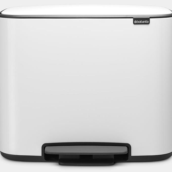 Productbeschrijving: Scheid eenvoudig afval in de Brabantia Bo Pedal Bin 11 + 23 Liter. De bak bestaat uit 2 compartimenten die een inhoud hebben van 11 en 23 liter. Zo scheid je bijvoorbeeld restafval van gft. Je plaatst de prullenbak door de vlakke achterkant eenvoudig tegen het keukenblok of de muur, hierdoor bespaar je ruimte. Zet het deksel vast om in 1 keer veel afval weg te gooien, door de soft closure sluit het deksel geruisloos. De binnenemmers zijn uitneembaar. Handig, want zo leeg en reinig je de prullenbak gemakkelijk.