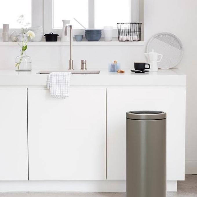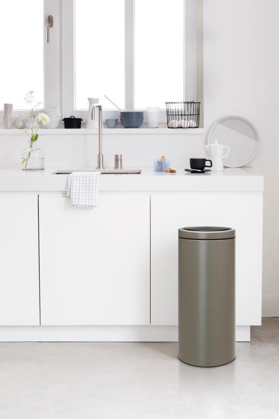Over de Brabantia touch bin flat top - platinum - 30 l prullenbak
