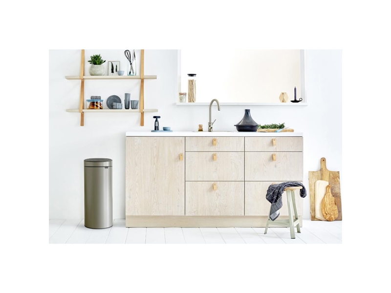 Productbeschrijving: De Brabantia Touch Bin 30 liter afvalemmer is niet alleen mooi vormgegeven maar ook zeer makkelijk in gebruik. Het deksel opent stil en soepel bij de lichtste aanraking. En uiteraard serieus makkelijk in gebruik, van het openen tot zakken verwisselen en schoonmaken. De binnenemmer met ventilatiegaten die vacuüm voorkomen als de volle afbalzak verwijderd wordt.