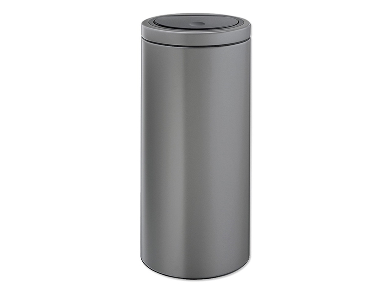 Over de Brabantia touch/push prullenbak flat top platinum 30l