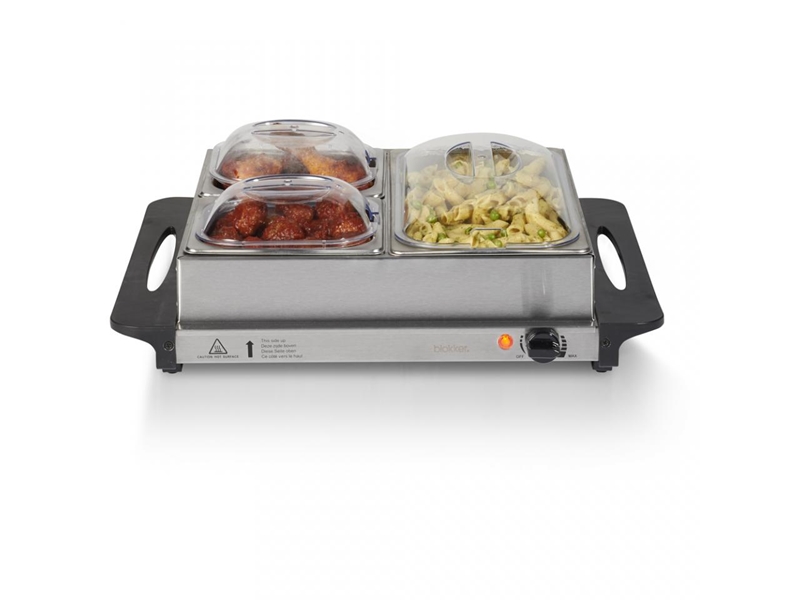 Productbeschrijving: Houd eten warm met deze buffet warmhoudschalen BL-26402. Geschikt voor barbecue, feestmaaltijd of buffet. Heb je bami gemaakt en scheppen je gasten op een verschillend moment op? Ga je steengrillen of racletten? Dan zijn deze warmhoudschalen ideaal. Je kunt in 3 verschillende bakken gerechten warm houden (1 bak heeft een inhoud van 2,5 liter en 2 bakken een inhoud van 1 liter).