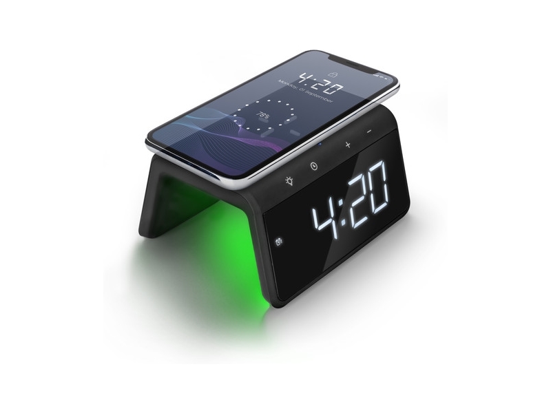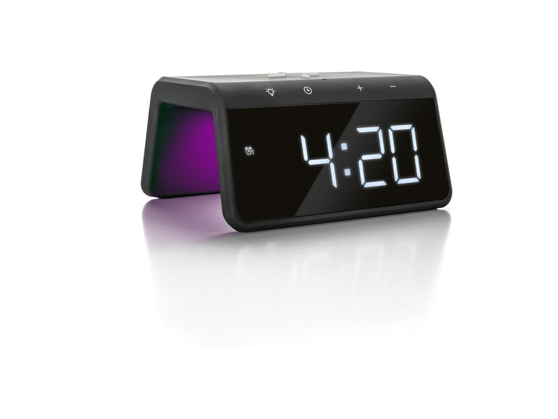 Productbeschrijving: De Caliber HCG019QI-B gebruik je op 3 manieren; als wekker, als nachtlampje en als oplader voor jouw smartphone. Handig, want zo heb je maar één apparaat nodig. Als wekgeluid klinkt de traditionele zoemer, welke je voor 5 minuten uitstelt door op de snooze knop te drukken. Om gebruik te maken van het nachtlampje kies je uit verschillende kleuren licht. Zo ga je bijvoorbeeld voor geel licht als je wilt lezen of voor paars licht als je een knusse sfeer wilt creëren. Je telefoon laad je op door hem op de wekker te leggen. Hiervoor moet jouw smartphone wel Qi technologie ondersteunen. Ondersteunt jouw telefoon deze technologie niet? Dan laad je 'm gewoon op via een usb kabel.