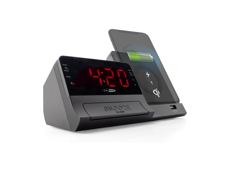 Productbeschrijving: De Caliber HCG012QI-BT gebruik je niet alleen als wekker, je gebruikt 'm ook om jouw smartphone draadloos op te laden. Handig, als je bijvoorbeeld maar één stopcontact naast je nachtkastje hebt. Als wekgeluid kies je tussen de traditionele zoemer en jouw favoriete radiostation. Staat jouw partner vaak op een andere tijd op? Dan stel je gemakkelijk een tweede wektijd in. Dankzij de aux aansluiting en de bluetooth verbinding gebruik je de wekker ook om muziek vanaf je smartphone af te spelen. Zo swing je 's ochtends de kamer door terwijl jij je klaarmaakt voor een nieuwe dag.