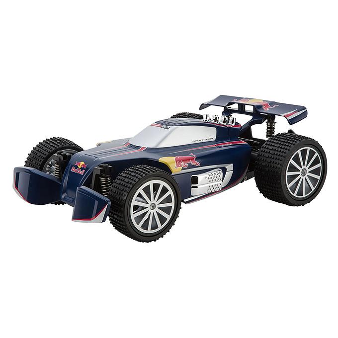 Productbeschrijving: Auto RC Carrera Red Bull NX1, een op afstand bestuurbare elektronische auto in de traditionele kleuren van Red-Bull. De afstandbestuurbare auto is gemaakt van kunstof en is geschikt voor jongens. In de verpakking zit: 1 afstandbestuurbare auto, 1 zender, 1 accu en 1 oplader. De auto eheft een topsnelheid van iets meer dan 20 km / u. Gedurende ongeveer 40 minuten neemt de off-roader je ruw en soepel over op een schaal van 1:16. De krachtige LiFePo4-accu moet dan ca. 80 minuten