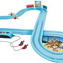 Productbeschrijving: Mario en Luigi racen in hun supercoole auto's over het 2,9 meter lange circuit en proberen hun beste prestaties te leveren. Stap op het gas met de ergonomische snelheidsregelaars om de gamehelden met hun auto's op een schaal van 1:50 door het smalle gedeelte en de flip-elementen te manoeuvreren. Maar pas op! Als je tegelijk met je tegenstander op het smalle gedeelte komt, is een botsing onvermijdelijk. Deze set wordt geleverd met de Nintendo�-licentie, dus het ontwerp van de verpakking, de slotcars en de decoratieve elementen van het circuit zijn volledig ontworpen in de Nintendo Mario Kart™-look. Als energiebron voor dit coole circuit heb je vier type C batterijen nodig. Batterijen zijn niet inbegrepen in de set.