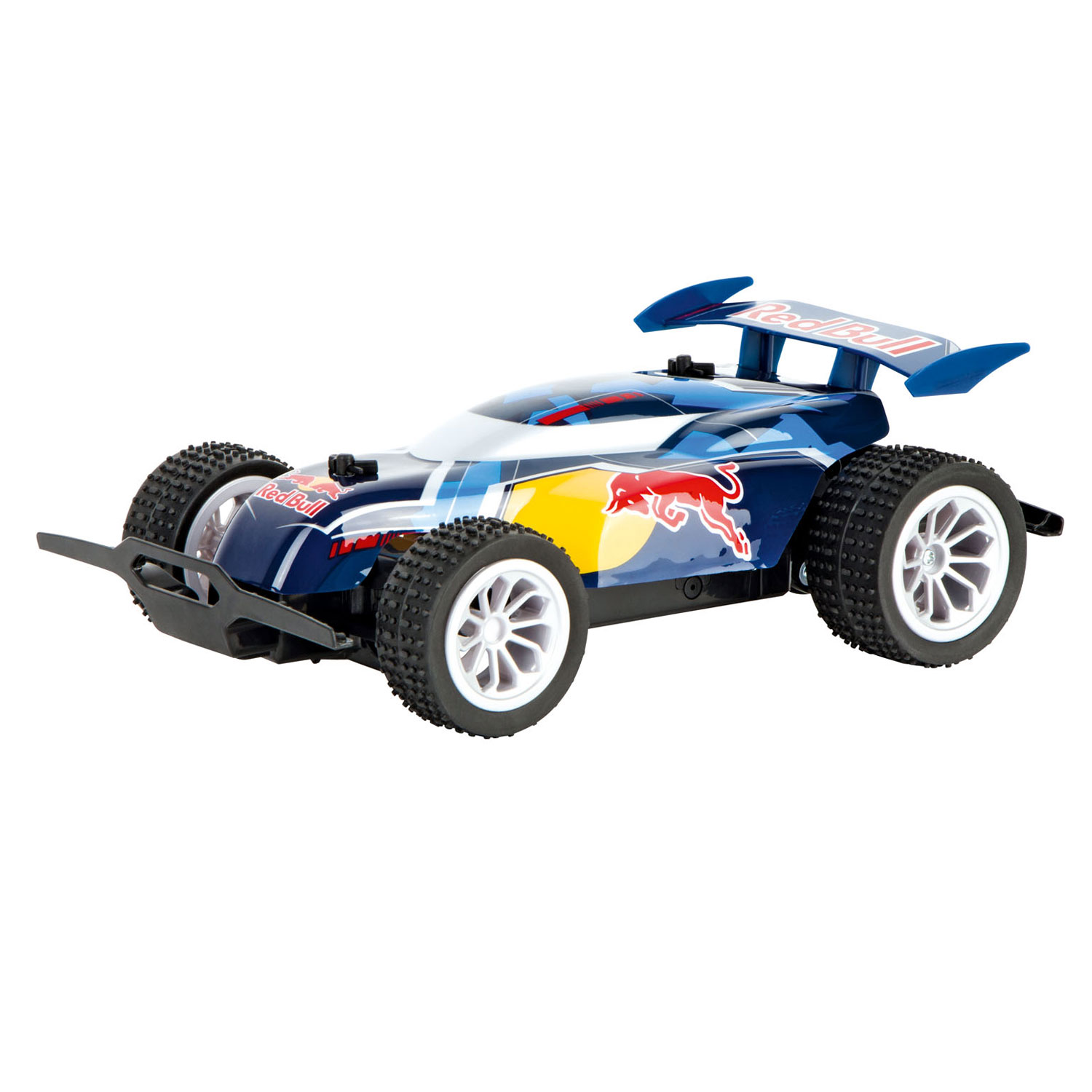 Productbeschrijving: Op afstand bestuurbare buggy auto met de Red Bull-licentie. Lichte race-carrosserie: flexibel en stabiel, schaal 1:20. Het Red Bull design maakt deze op afstand bestuurbare auto op schaal 1:20 tot een echte eyecatcher op de weg. De auto wordt niet alleen voor- en achteruit bestuurd dankzij Full Function Technology, maar ook naar links en rechts. Dankzij moderne 2,4 GHz-technologie kun je zelfs met meerdere auto's tegelijk rijden, zodat je samen met je vrienden spannende races kunt organiseren.