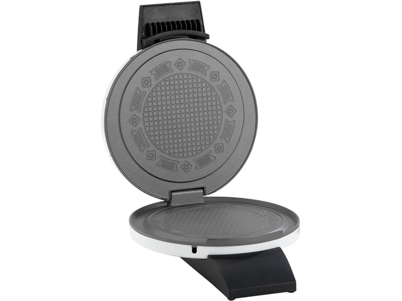 Productbeschrijving: Cloer wafelijzer voor oubliewafels of kniepertjes heeft een diameter van 15 cm en is voorzien van een regelbare thermostaat met 5 standen. Gebruik het wafelijzer voor het bakken van kniepertjes, dunne wafels, die je tot oublihoorns of cannoli kunt rollen. Heerlijk als dessert.