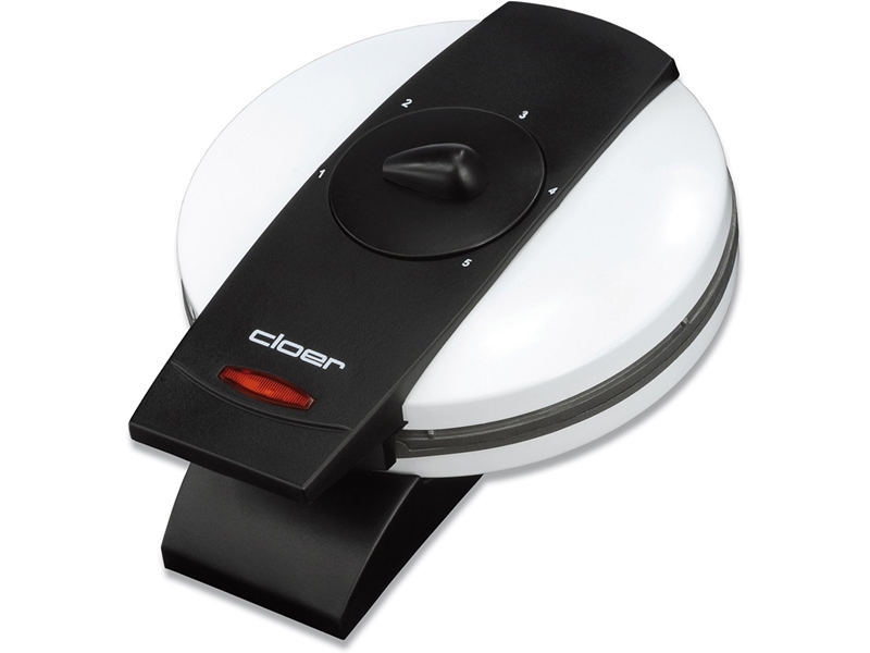 Productbeschrijving: Cloer wafelijzer voor oubliewafels of kniepertjes heeft een diameter van 15 cm en is voorzien van een regelbare thermostaat met 5 standen. Gebruik het wafelijzer voor het bakken van kniepertjes, dunne wafels, die je tot oublihoorns of cannoli kunt rollen. Heerlijk als dessert.