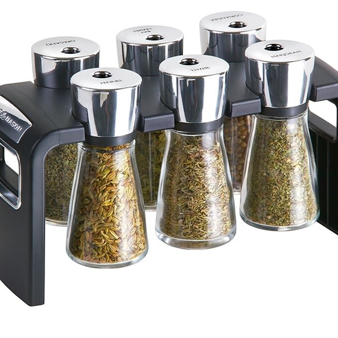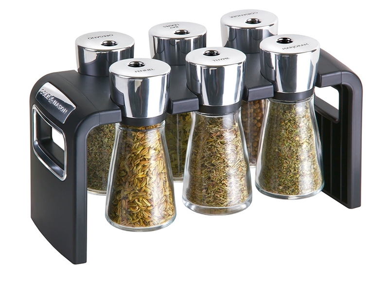 Productbeschrijving: Met dit kruidenrekje van Cole & Mason heb je de basiskruiden altijd bij de hand. Het rekje bevat 6 gevulde glazen potjes met een strooidop. De kruiden die erin zitten zijn: venkel, koriander, laurier, marjolein, tijm en oregano.