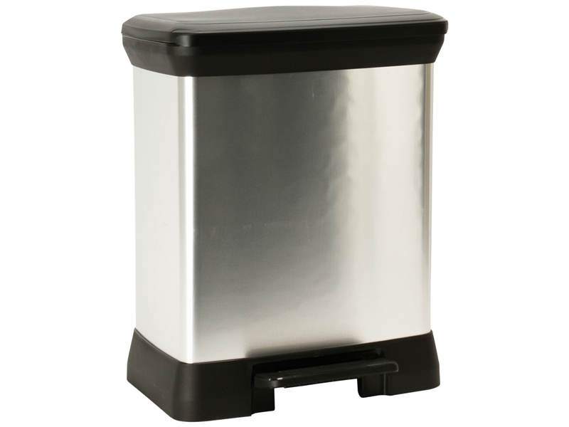 Productbeschrijving: De Curver Duo Decobin is voorzien van twee verschillende binnenemmers zodat het erg gemakkelijk wordt om uw afval te scheiden. Één binnenemmer van 10 liter en eentje van 18 liter. Naast het pedaal is de prullenbak ook voorzien van een flexibele rand in de deksel, waardoor de geur niet kan ontsnappen. Deze afvalbak heeft de stijlvolle uitstraling van een metalen afvalbak, maar de voordelen van kunststof.