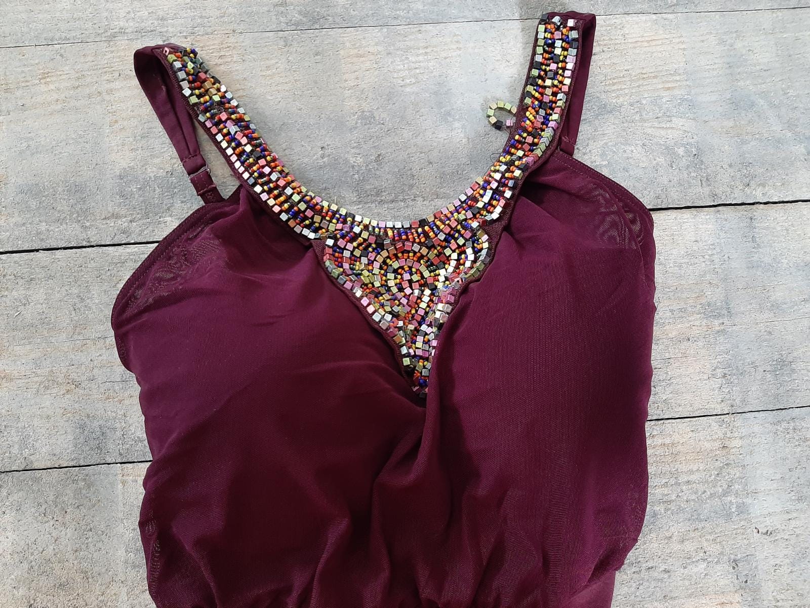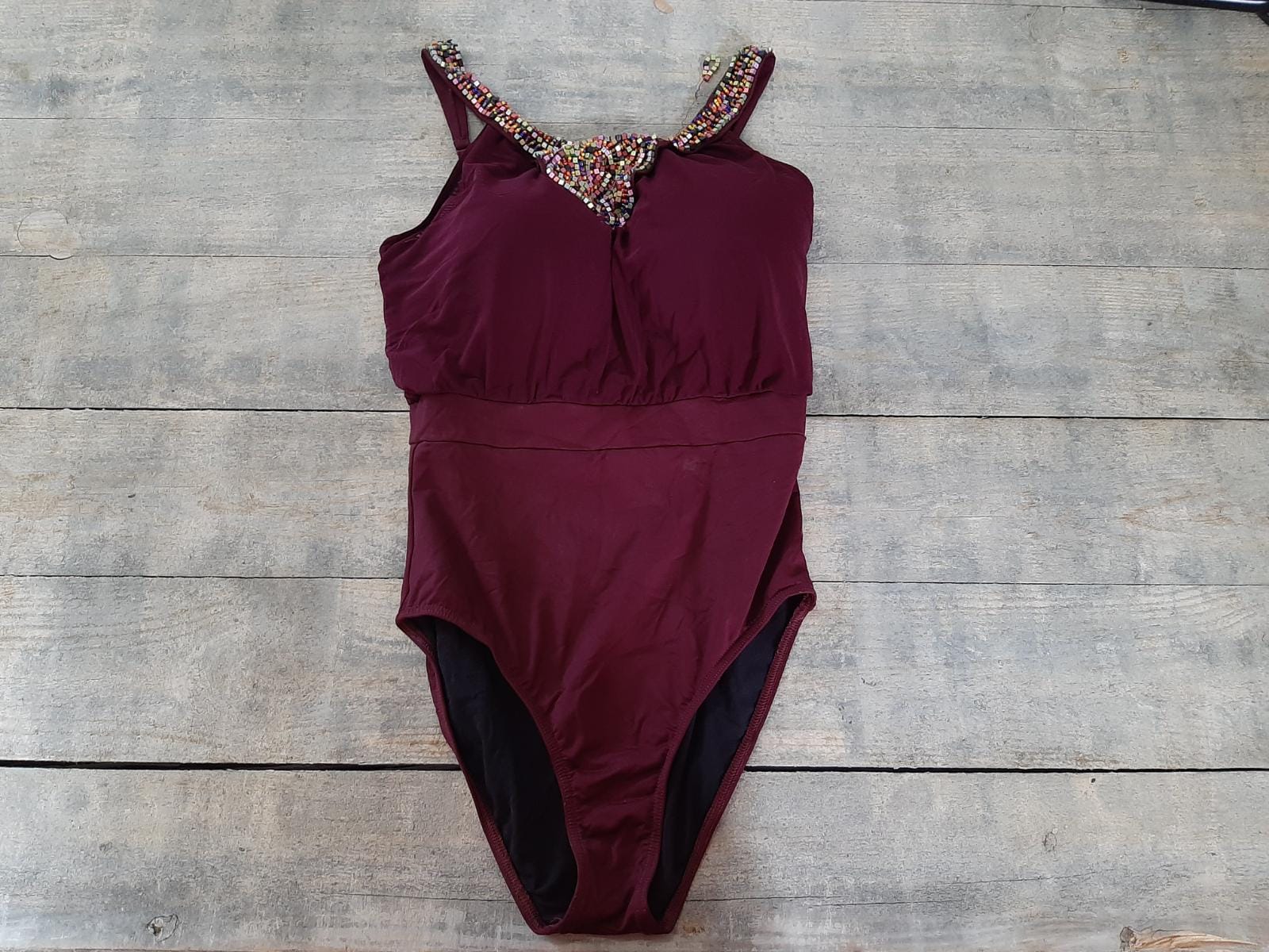 Productbeschrijving: Cyell badpak Platinum Ess. Ruby Maat 40 Bordeaux, gemaakt van polyamide en elasthaan. Heeft verstelbare schouderbandjes, geen beugels, wel cups.