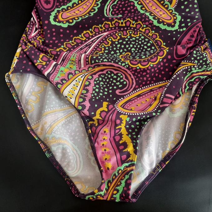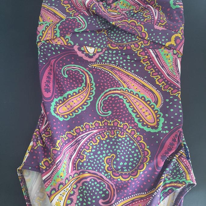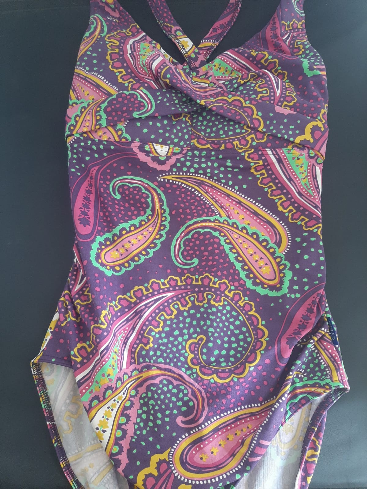 Productbeschrijving: Cyell badpak Purple Print in maat 38B. Het badpak heeft cups en verstelbare schouderbandjes die gekruist zijn.