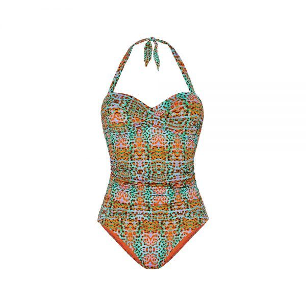 Productbeschrijving: Dit badpak met tijgerprint is voorzien van foamcups en een luxe uitstraling. Badpak met halter van de Cyell SAMI collectie