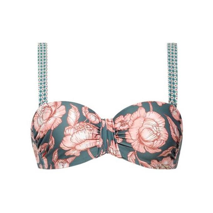 Productbeschrijving: Cyell Bikini set Peony romance Bikinitop + Bikini broekje. De bandeau bikinitop met voorgevormde cups en beugel is in maat 38B. De top kan op meerdere manieren worden gedragen: strapless, met schouderbandjes of als halter. Het bikinibroekje is maat 38 en heeft een lage pasvorm, speelse strikbandjes aan de zijkanten.