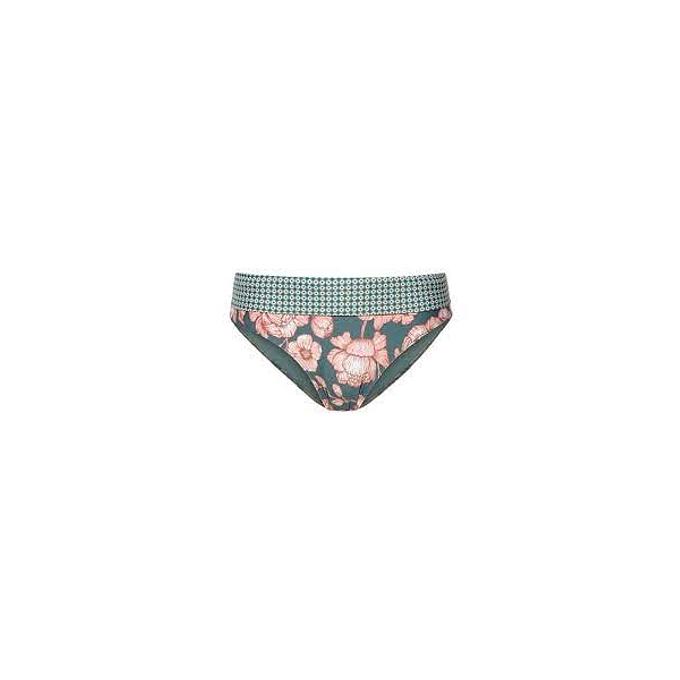 Productbeschrijving: Het Peony romance Regular bikini broekje uit de dames collectie van Cyell heeft een romantische bloemenprint van pioenrozen in roze tinten met een donkergroene basiskleur. Het bikinibroekje heeft een normale pasvorm en een geplooide tailleband