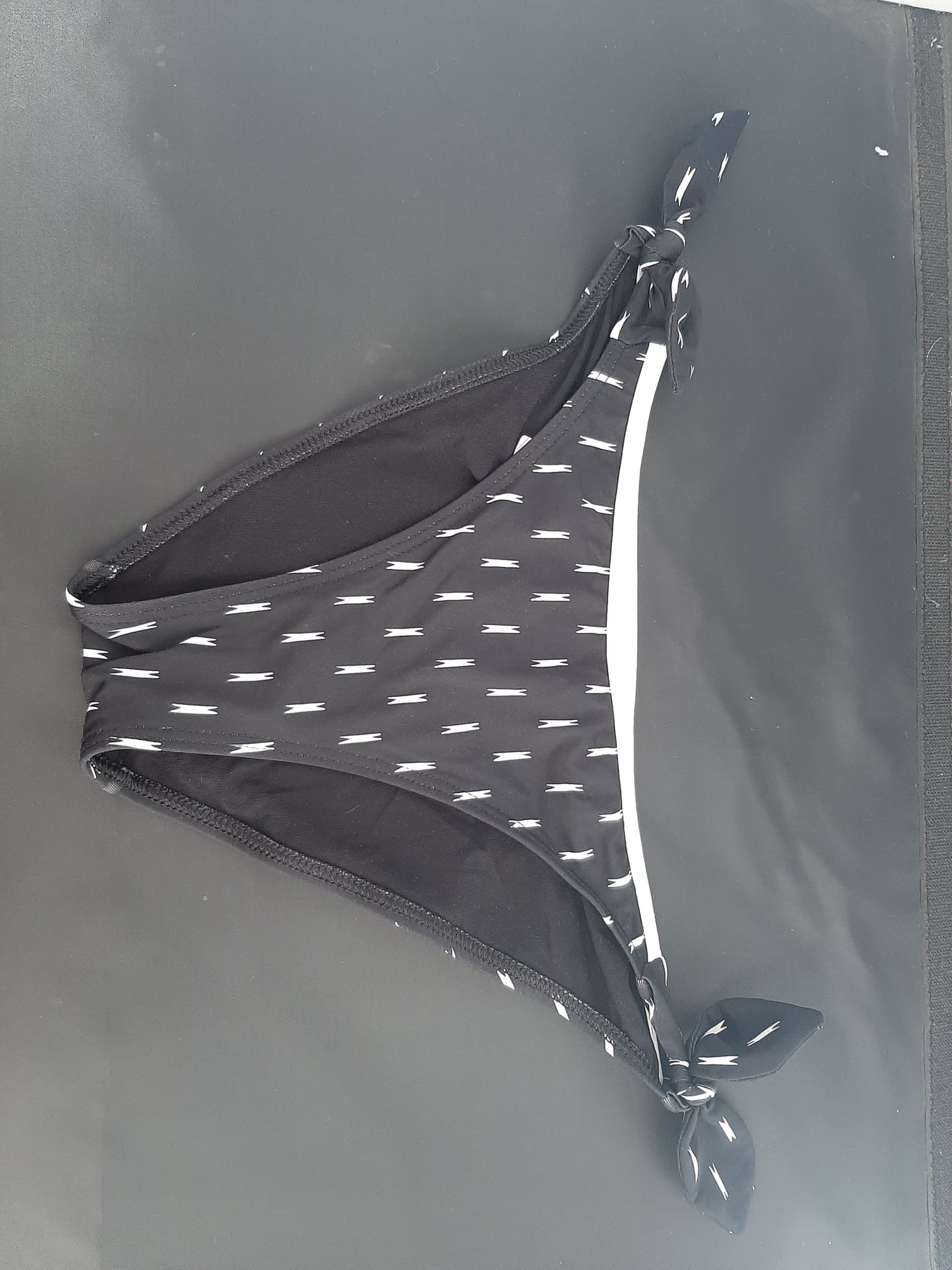 Productbeschrijving: Cyell bikinibroekje Zwart Wit in maat 36. Het broekje heeft strikjes aan de zijkanten.