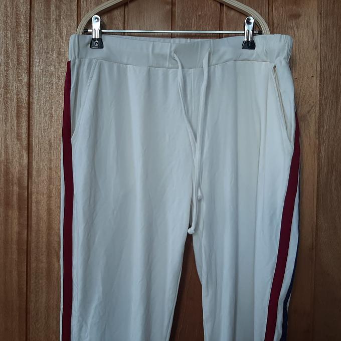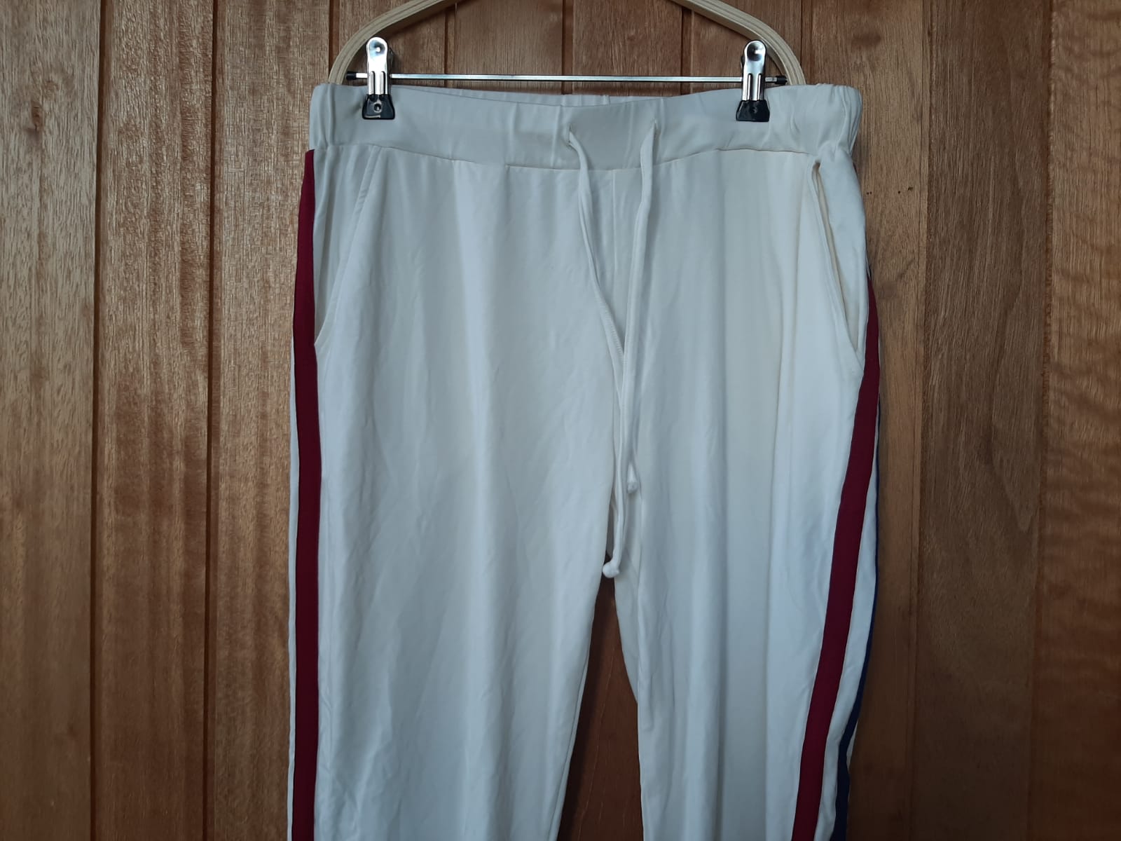 Productbeschrijving: Cyell Joggingbroek White Stripe in maat 38 heeft een leuke kleurencombinatie. De broek heeft steekzakken, zijstrepen en elastieken taille met een strikkoord.