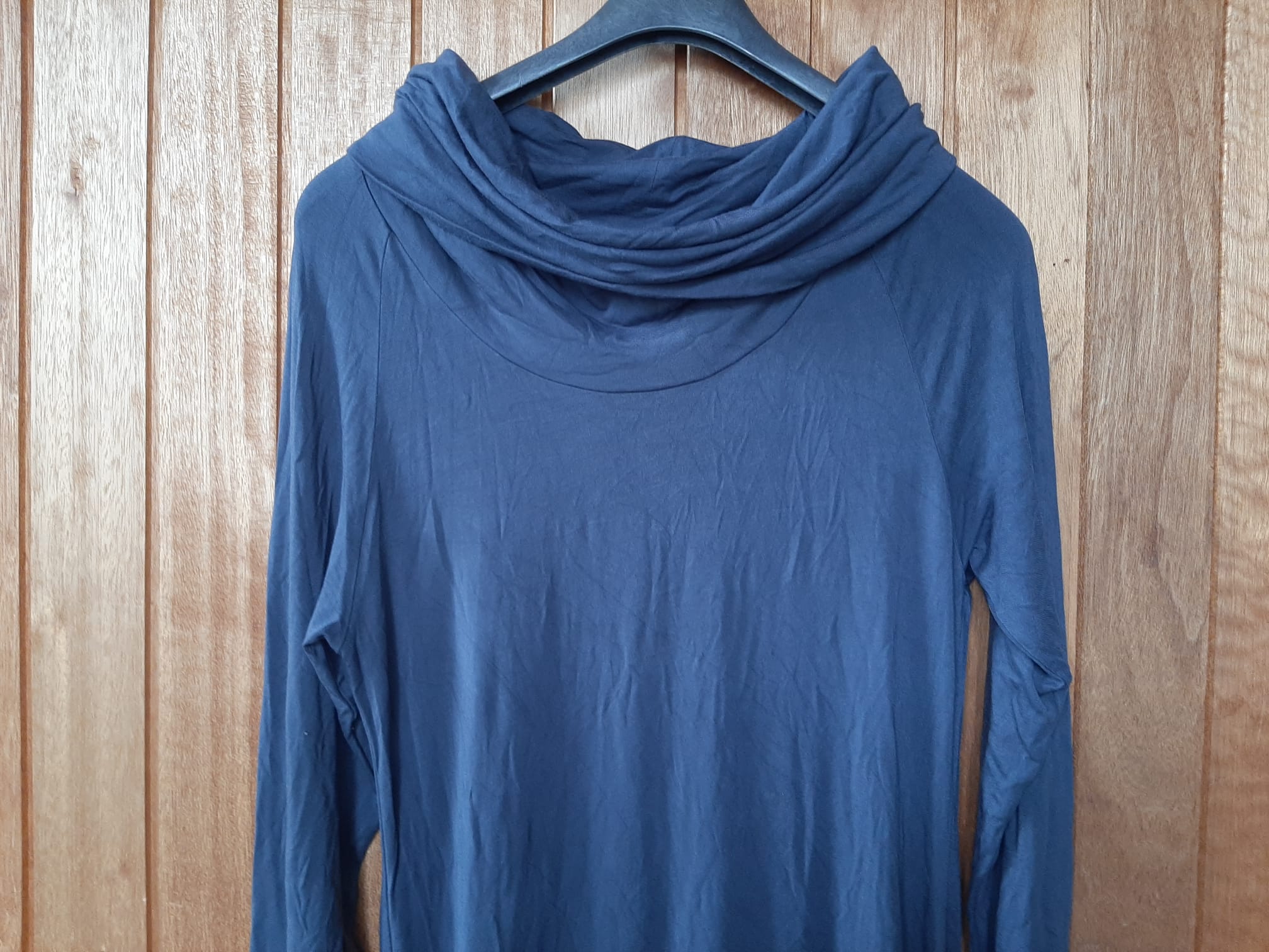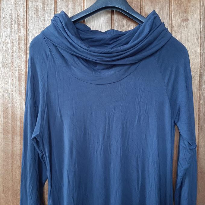 Voorzien van: Col, lange mouw, plooien onderkant, valt tot onder de knieën.