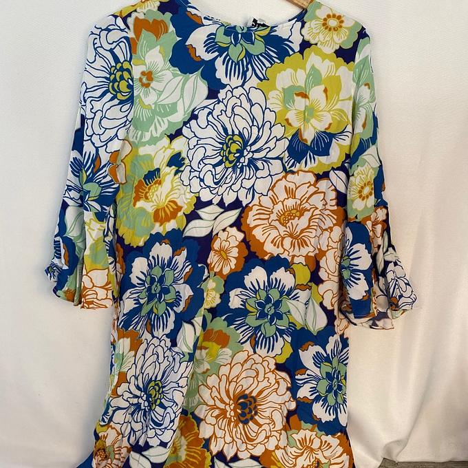 Productbeschrijving: De Bellissimo tuniek van Cyell is uitgevoerd in een prachtige bloemenprint op een donkerblauwe achtergrond. Deze hippe tuniek valt tot aan de knieën en heeft lange mouwen. Door de fijne stof is deze perfect te dragen over je bikini.