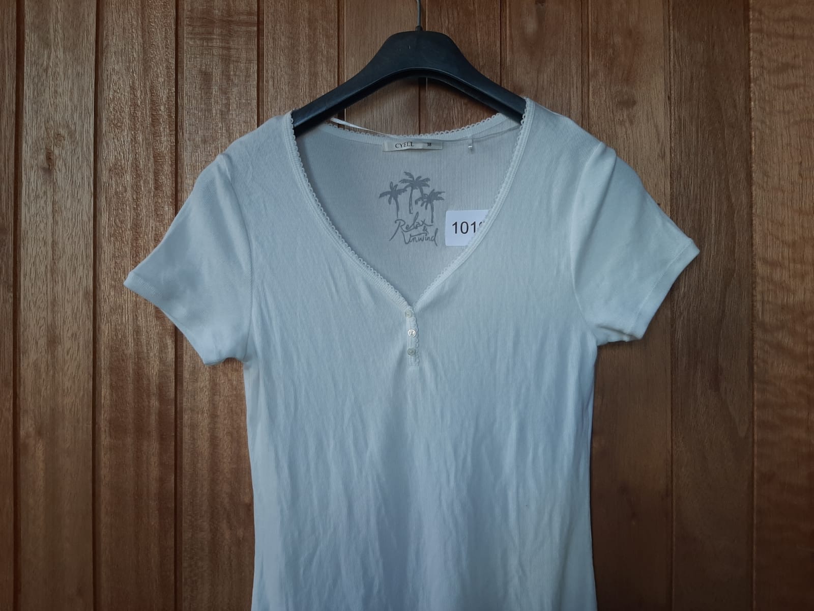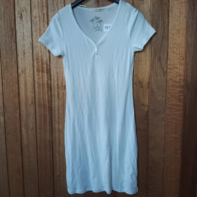 Productbeschrijving: Cyell Jurkje White in maat 38 is gemaakt van katoen en elasthaan. Het jurkje heeft korte mouwen en een elastische stof. Het jurkje valt tot boven de knieën.