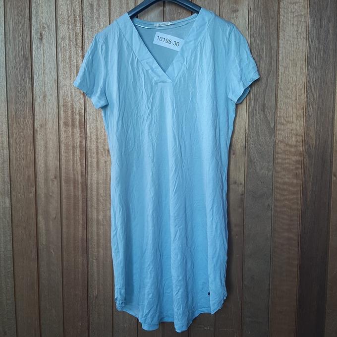 Productbeschrijving: Cyell Nachtjapon Babyblue in maat 40 is gemaakt van katoen en modal. De jurk heeft korte mouwen, een v-hals en valt tot boven de knieën.