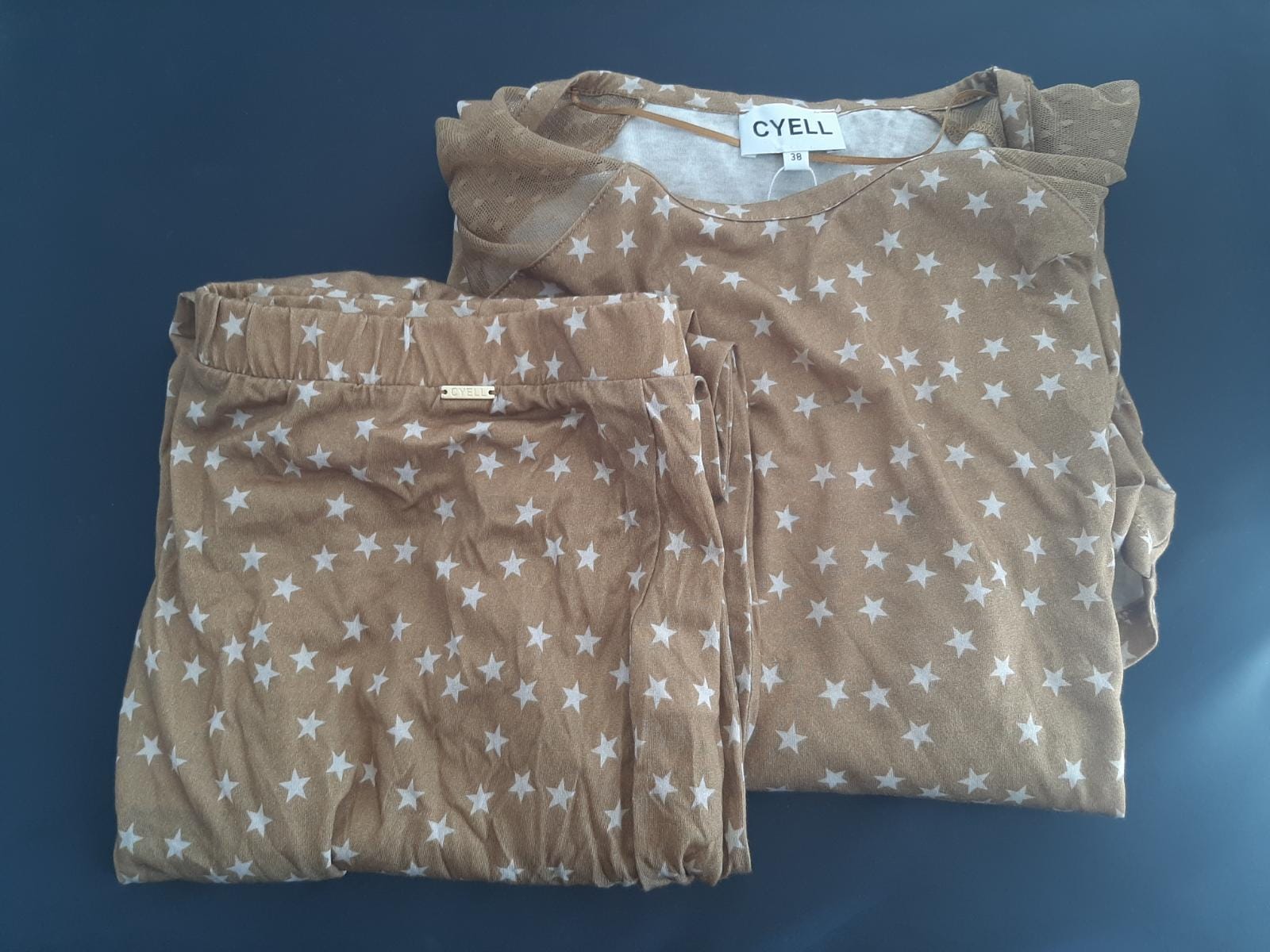 Over de Cyell pyjama lang shirt + broek infinity old gold