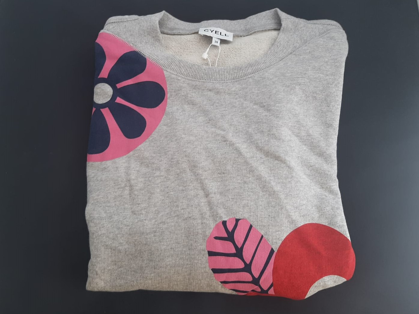 Productbeschrijving: Cyell Shirt long sleeve retro flower grey melange Maat 38 met ronde hals