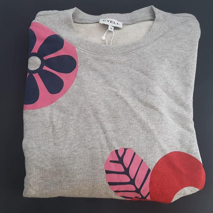 Productbeschrijving: Cyell Shirt long sleeve retro flower grey melange Maat 38 met ronde hals