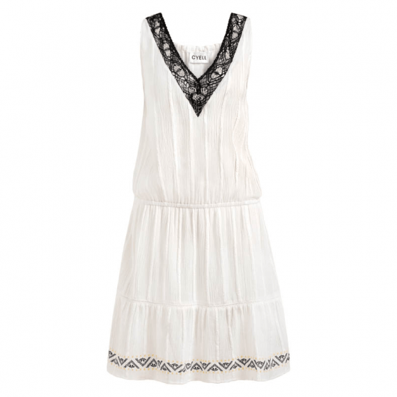 Productbeschrijving: Het Delicias strandjurkje van Cyell is uitgevoerd in een off-white kleur. Het jurkje heeft een zwart opengewerkt lace-up detail aan de voorkant bij het decolleté. Heerlijk om naar het strand te dragen. Combineer dit strandjurkje met je favoriete Cyell bikini! Valt tot boven de knieën.