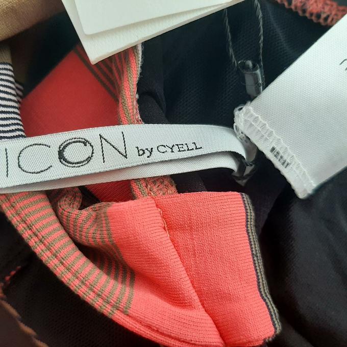 Productbeschrijving: ICON by Cyell serie sunrise splash.One shoulder bikinitop met structuur in de stof aan de voorzijde, beugels en goud kleurige sluiting aan de achterzijde. Maat valt normaal.