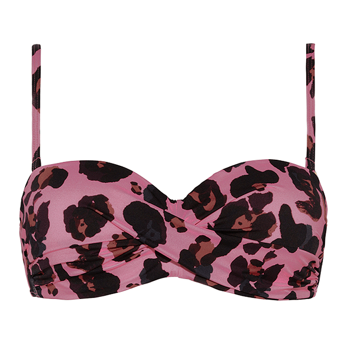 Productbeschrijving: De Safari bandeau bikinitop met bandjes van Cyell is bedrukt met een mooie luipaardprint. In combinatie met de roze achtergrond zorgt dit voor een zomerse uitstraling. Tussen de cups is een speelse twist aanwezig. De bikinitop is op verschillende manieren te dragen, namelijk als halter, strapless en met rechte schouderbandjes.