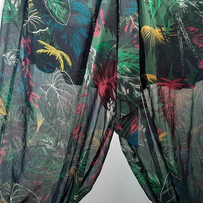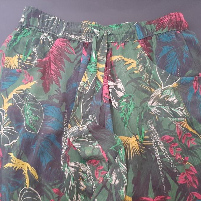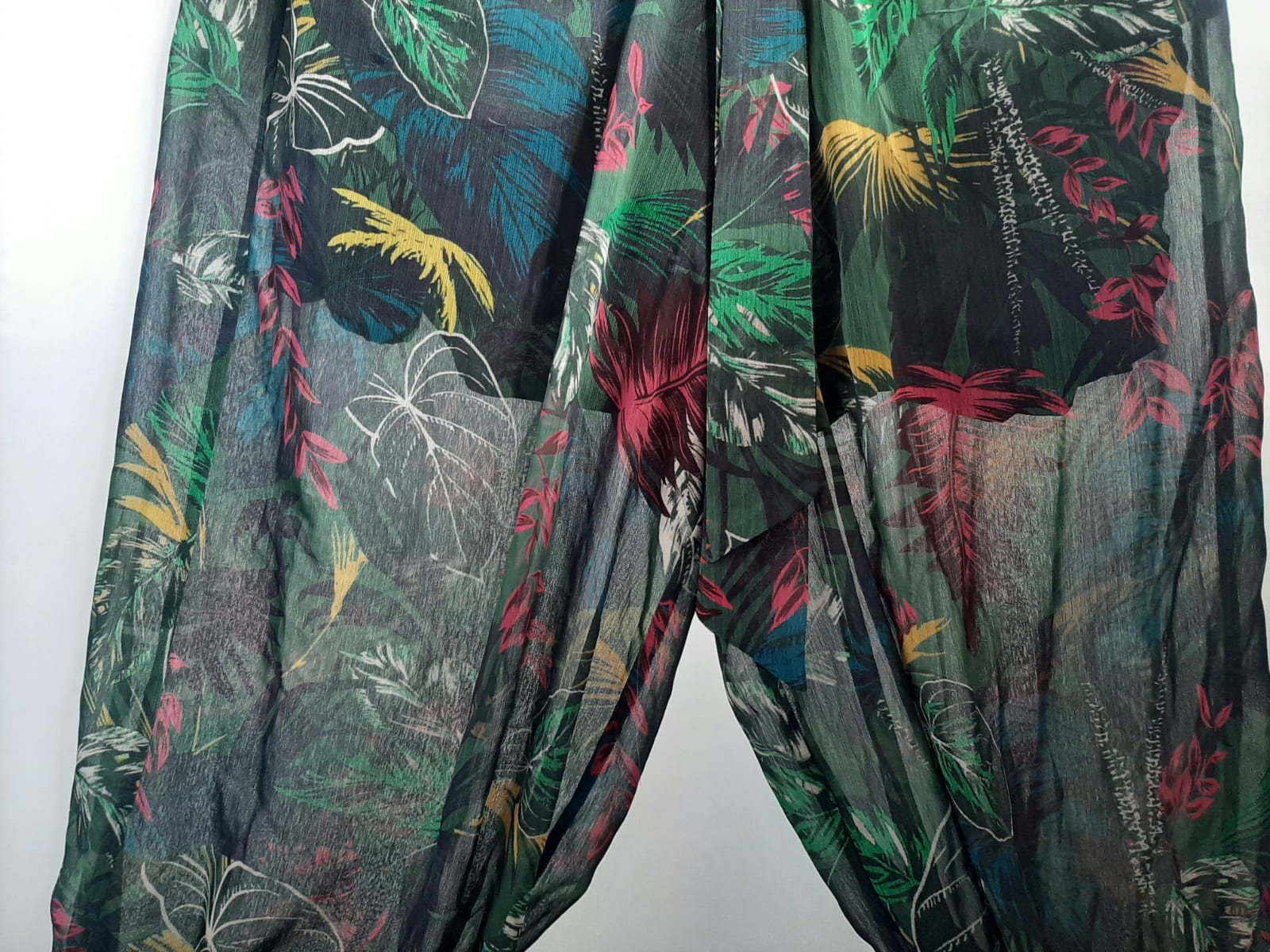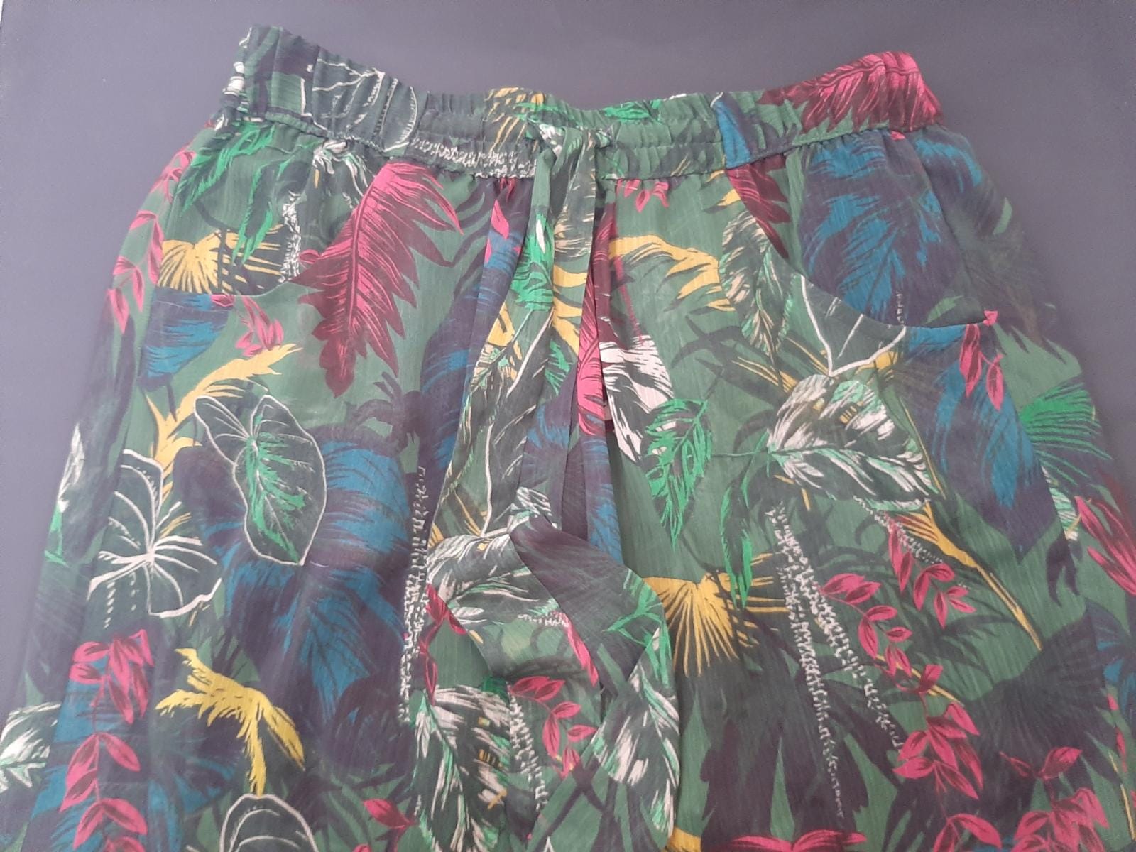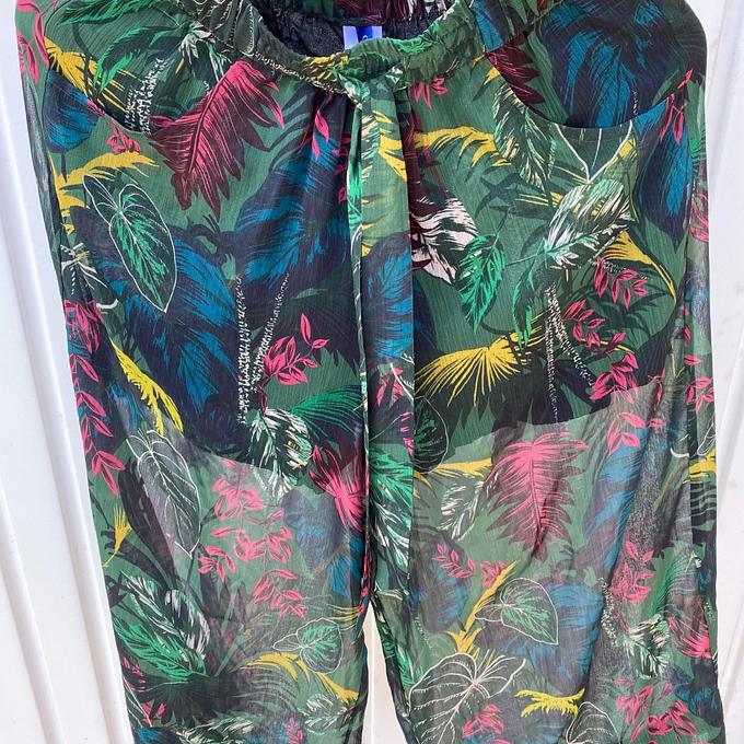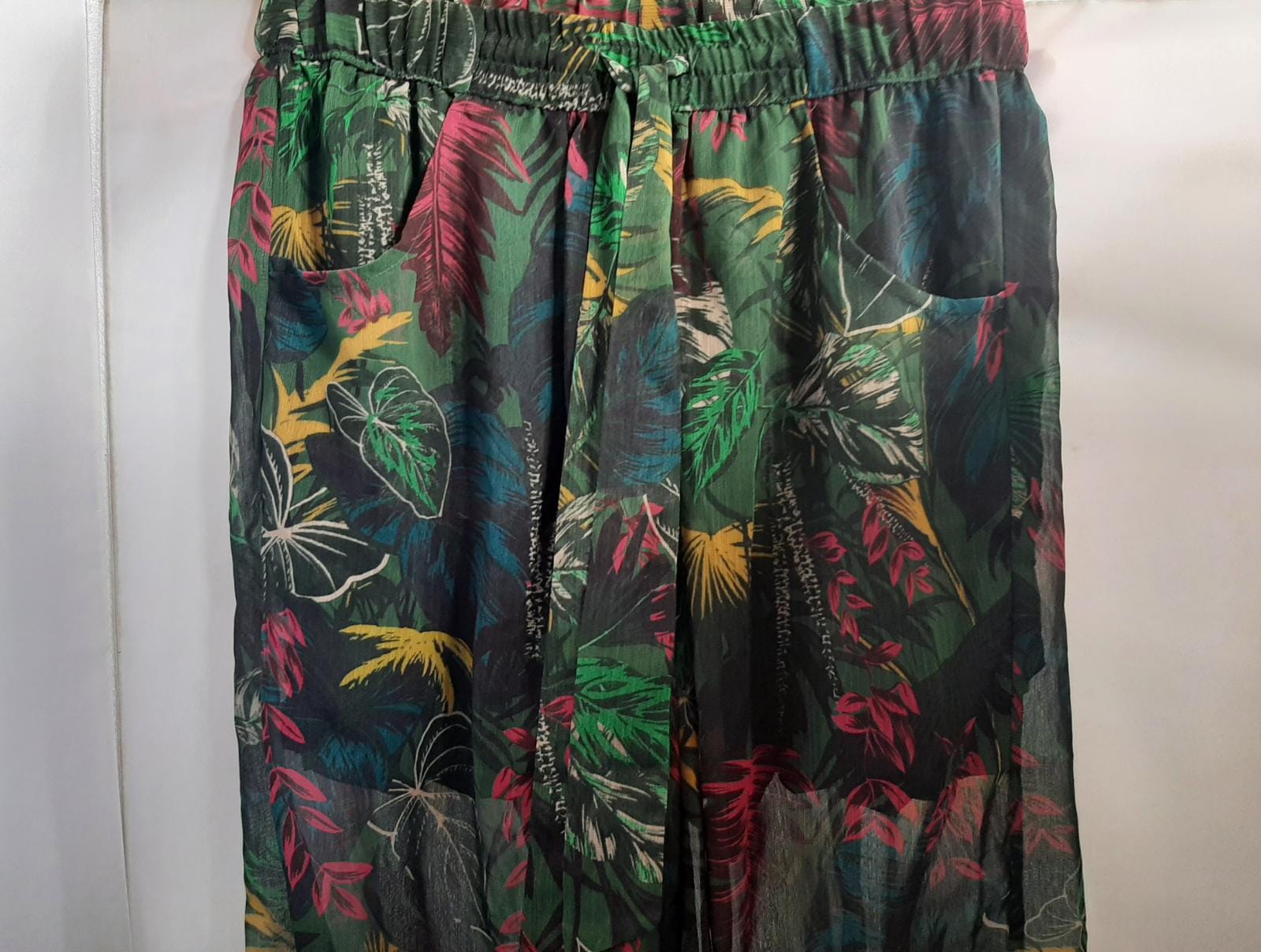 Productbeschrijving: Cyell Trousers Jungle Chic Peggy maat S is gemaakt van een comfortabele stof. De broek heeft een korter onderzittend broekje en de lange broek is gemaakt van een doorschijnende stof.