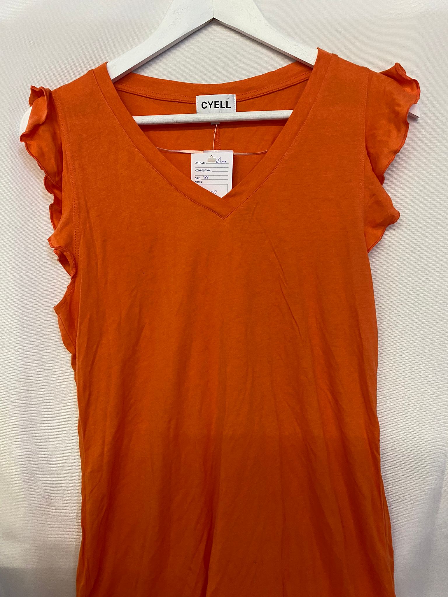 Productbeschrijving: Cyell zomerjurk Orange Fringe maat 38 is gemaakt van 50% katoen en 50% modal. Het jurkje heeft frandjes bij de armen, een kleine v-hals, valt tot de knieën en is mouwloos.