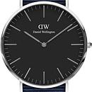 Productbeschrijving: Dit Daniel Wellington horloge met zwarte wijzerplaat (ø 40 mm) en zilverkleurige kast is een goede match voor iedere outfit. Door de klassieke klok en het sportieve blauwe NATO bandje is dit horloge geschikt voor zowel op kantoor als op de sportvelden.