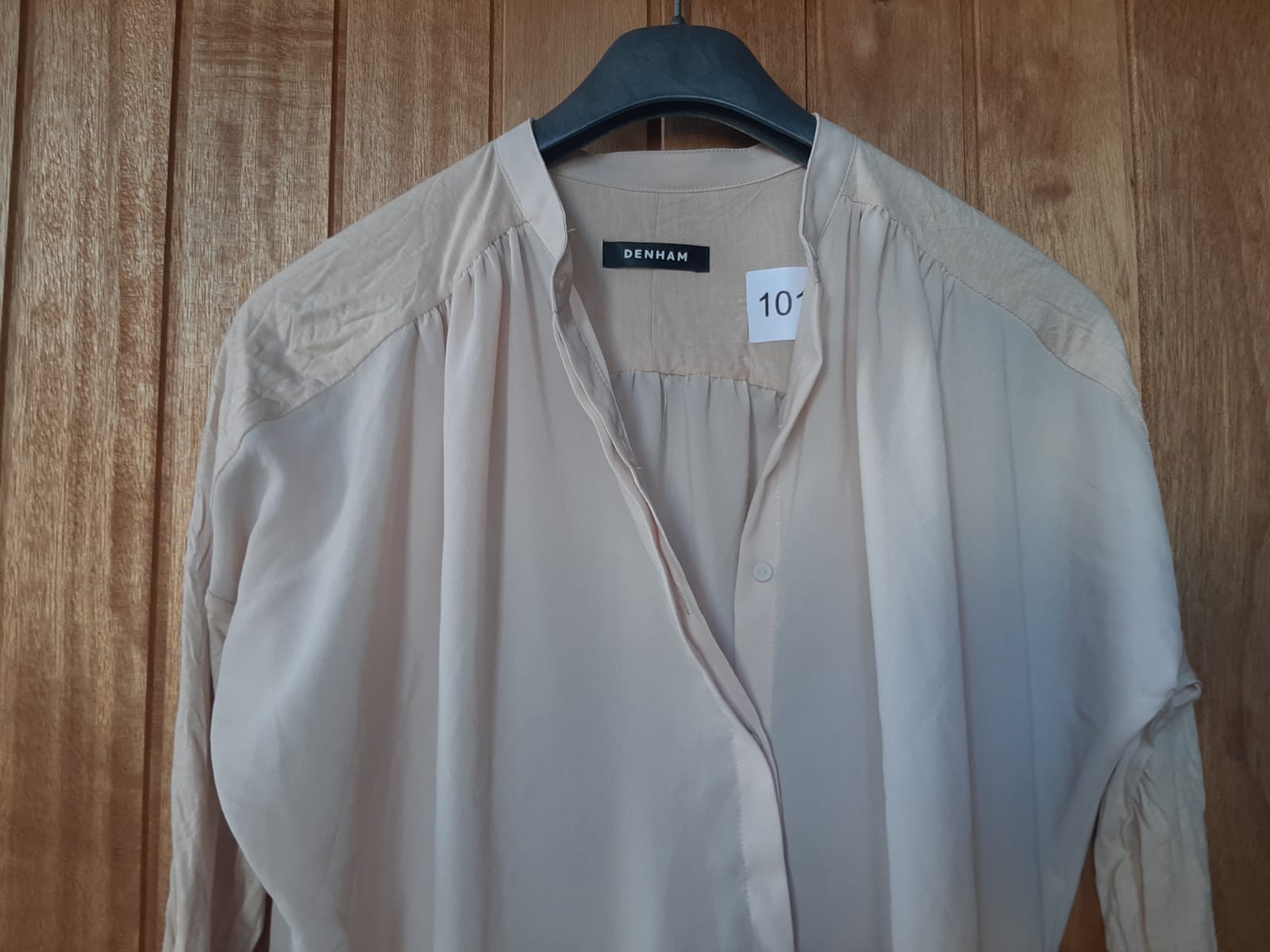 Productbeschrijving: Denham Nude Blouse in maat M is gemaakt van polyester en elasthaan.