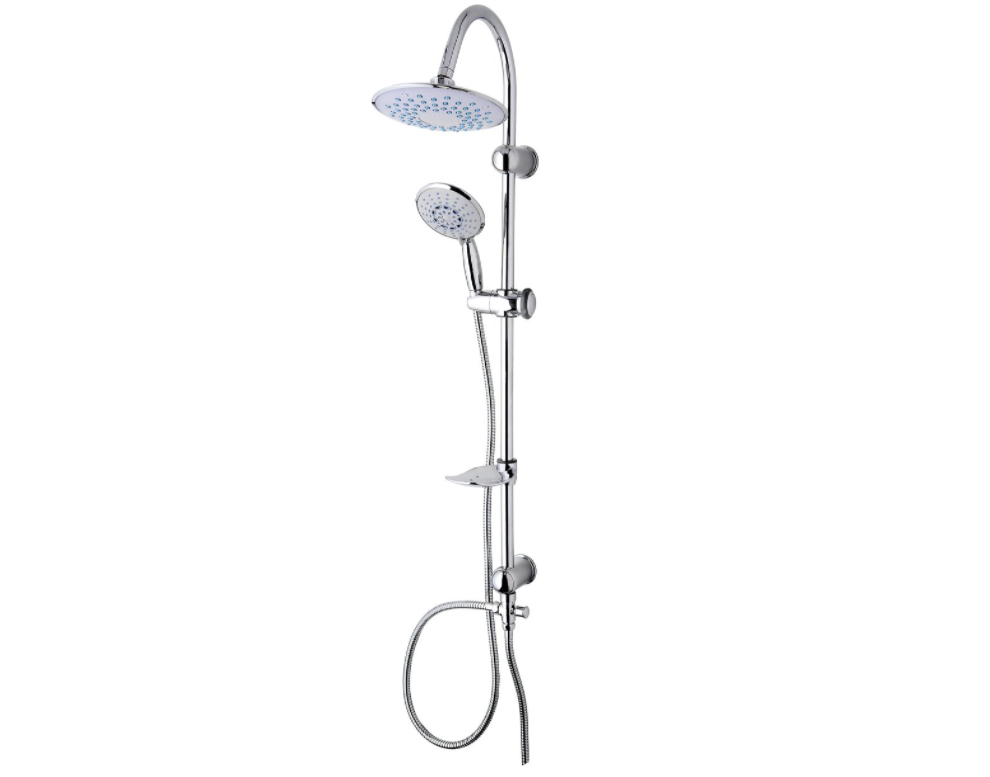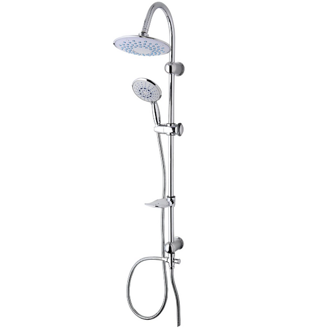 Bestaande uit: Glijstang, hoofddouche, handdouche inclusief slang, zeepbakje, aansluitslang voor op de douchekraan, 2 glijstanghouders met muur bevestiging.