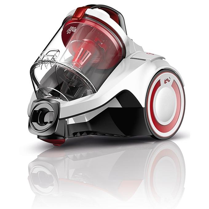 Productbeschrijving: De Dirt Devil Rebel 25HE stofzakloze cycloonstofzuiger heeft een hoge zuigkracht vanwege zijn 700 watt High Effiency motor, is compact van formaat en wordt geleverd met een RVS telecoopbuis en standaard omschakelbare zuigmond. De stofzuiger heeft rubberen wielen waardoor krassen worden voorkomen.