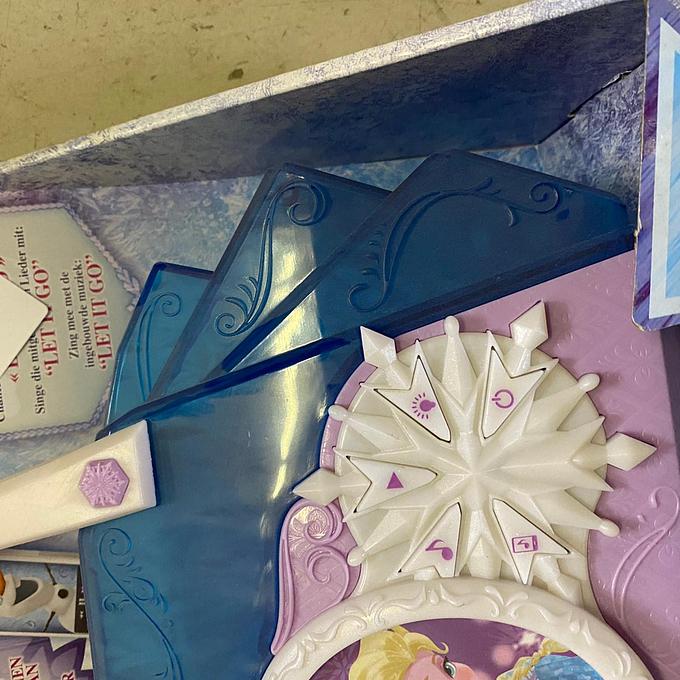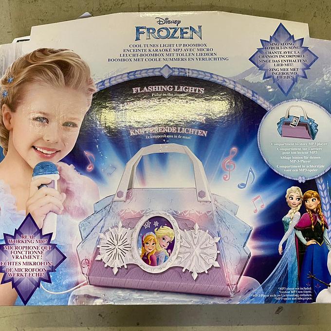 Productbeschrijving: Jonge artiesten kunnen met deze Light Up Boombox-karaokeset lekker meezingen met de leukste liedjes uit Disney Frozen. De boombox heeft een unieke vormgeving met een afbeelding van Elsa en Anna en is uitgerust met ingebouwde lichten die knipperen op de maat van de muziek. De paarse microfoon werkt bovendien echt en je kunt ook nog eens je eigen MP3-speler aansluiten. Laat je zangtalenten horen en zing je favoriete liedjes!