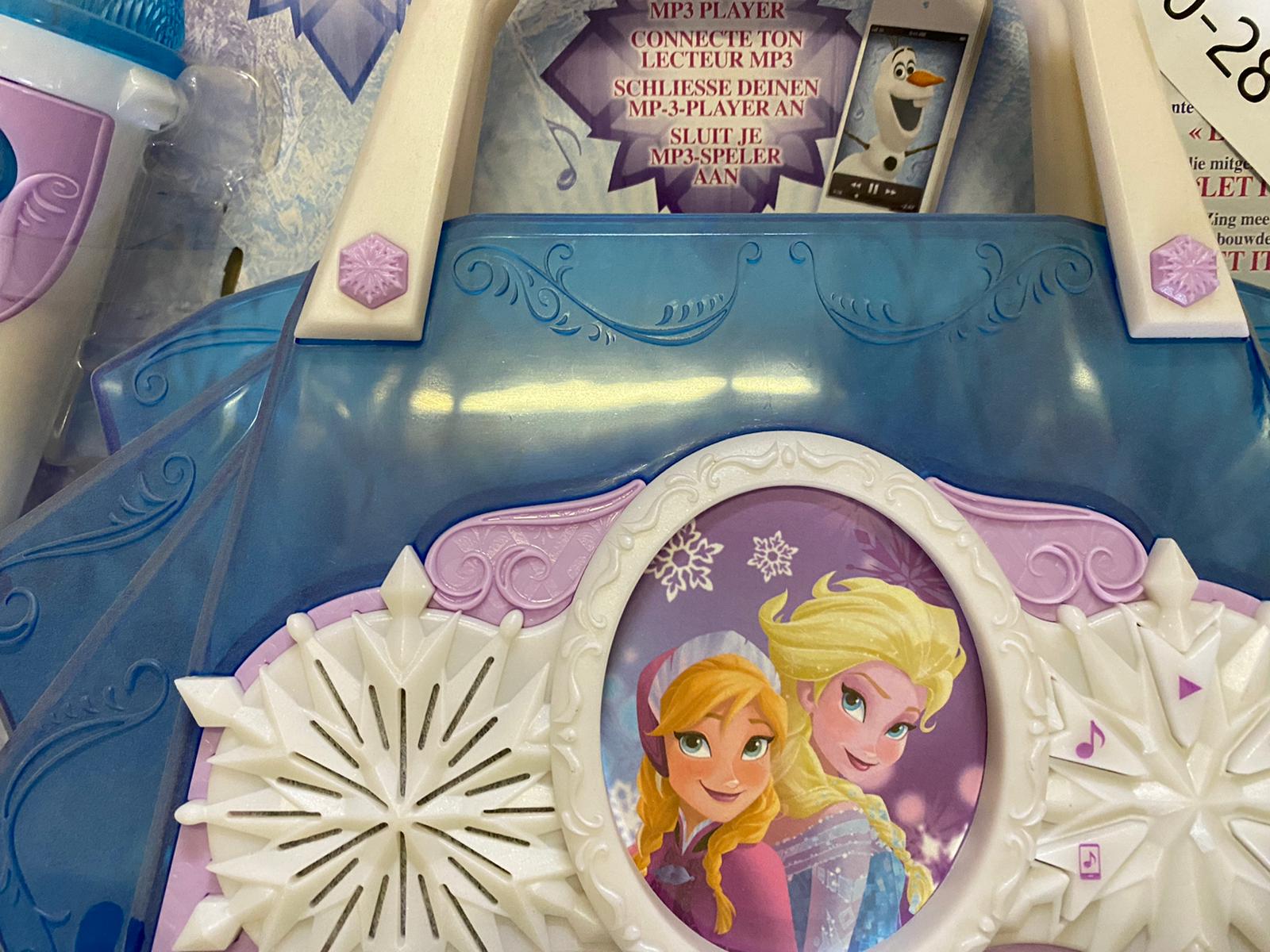 Productbeschrijving: Jonge artiesten kunnen met deze Light Up Boombox-karaokeset lekker meezingen met de leukste liedjes uit Disney Frozen. De boombox heeft een unieke vormgeving met een afbeelding van Elsa en Anna en is uitgerust met ingebouwde lichten die knipperen op de maat van de muziek. De paarse microfoon werkt bovendien echt en je kunt ook nog eens je eigen MP3-speler aansluiten. Laat je zangtalenten horen en zing je favoriete liedjes!