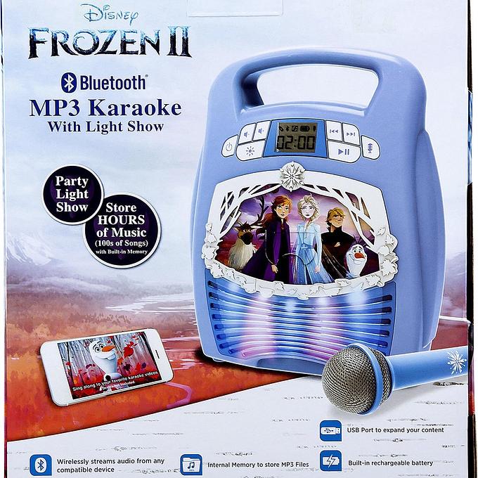 Productbeschrijving: Deze te gekke nieuwe FROZEN 2 karaoke set is volledig portable. De ingebouwde lichtshow bied tal van verschillende lichten om de slaapkamer van uw kind volledig tot leven te brengen.. Verbindt makkelijk met bluetooth of een Usb stick en het feest kan beginnen. De microfoon is inbegrepen.