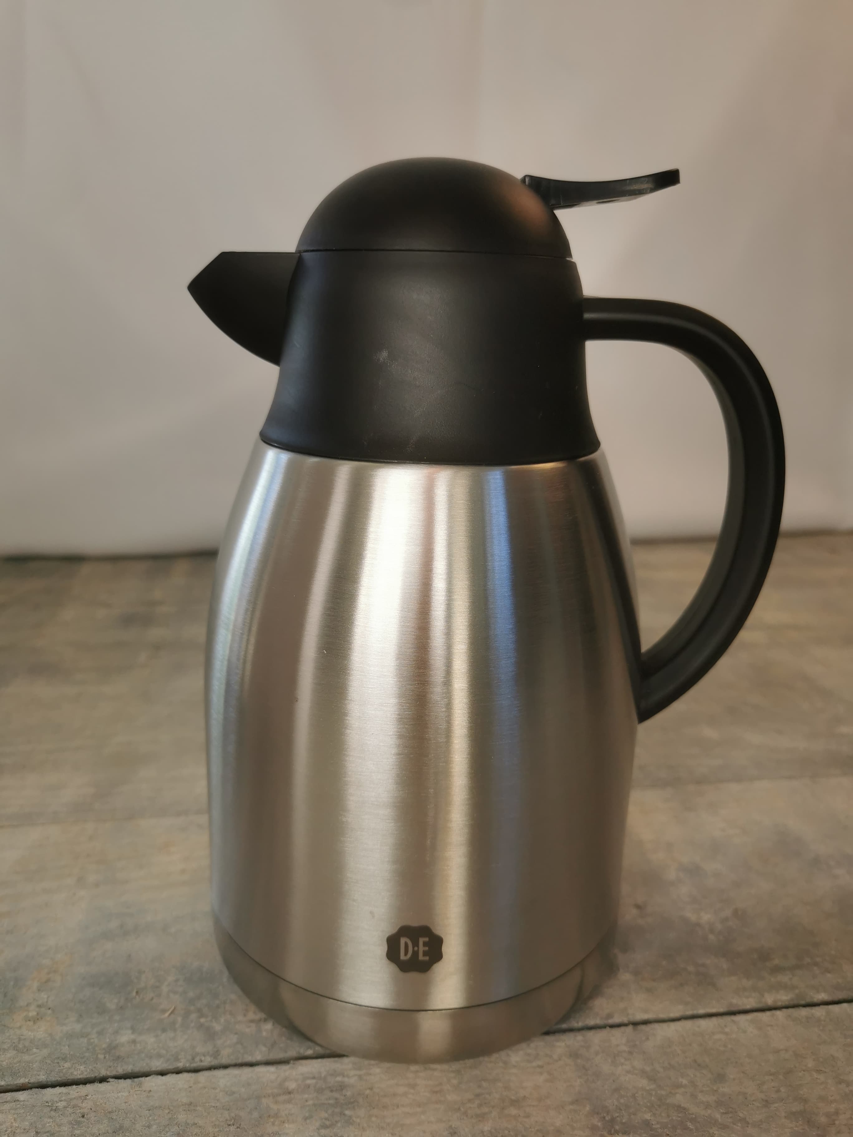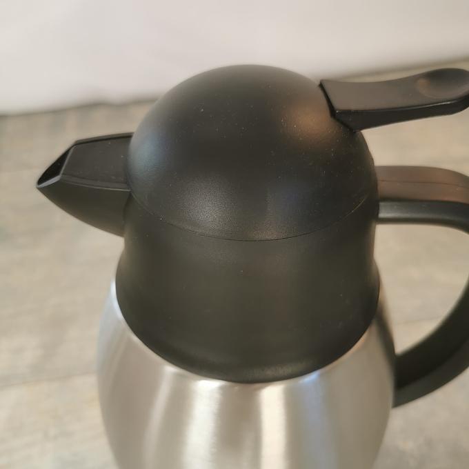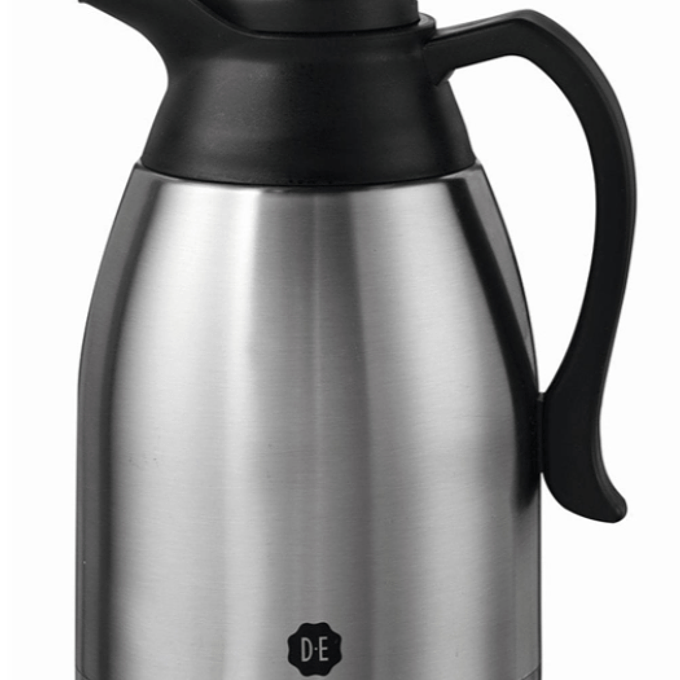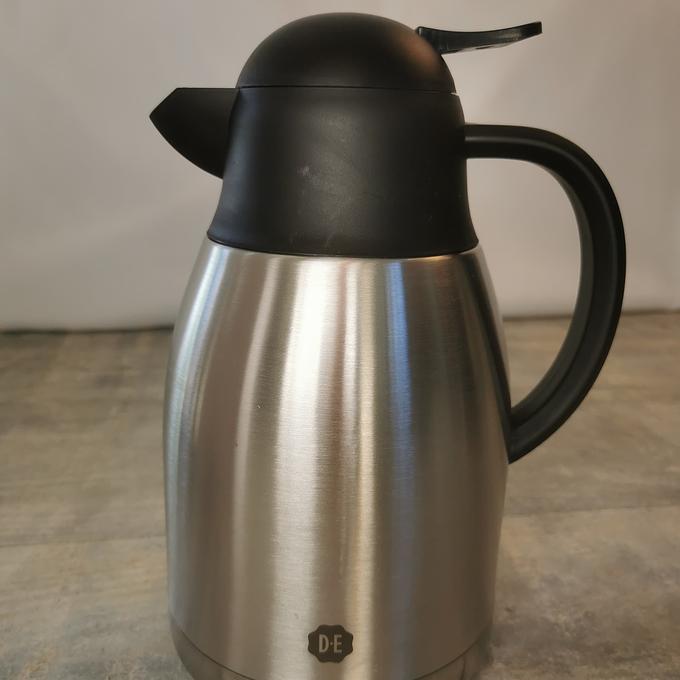 Productbeschrijving: Met deze zilverkleurige isoleerkan (dubbelwandig - 1,5L) houd je je koffie of thee goed warm. Met handige drukknop om te schenken.