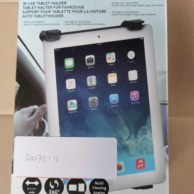 Productbeschrijving: Deze tablethouder is ideaal voor als jouw passagiers de tablet willen gebruiken tijdens lange autoritten. De houder is gemakkelijk aan de pinnen van de hoofdsteun te bevestigen. Daarnaast is de houder 360 graden draaibaar, zodat je jouw tablet zowel verticaal als horizontaal kunt ophangen. Minimale lengte/breedte: 14 cm Maximale lengte/breedte: 25 cm Afstand tussen pinnen hoofdsteun: 10-20 cm