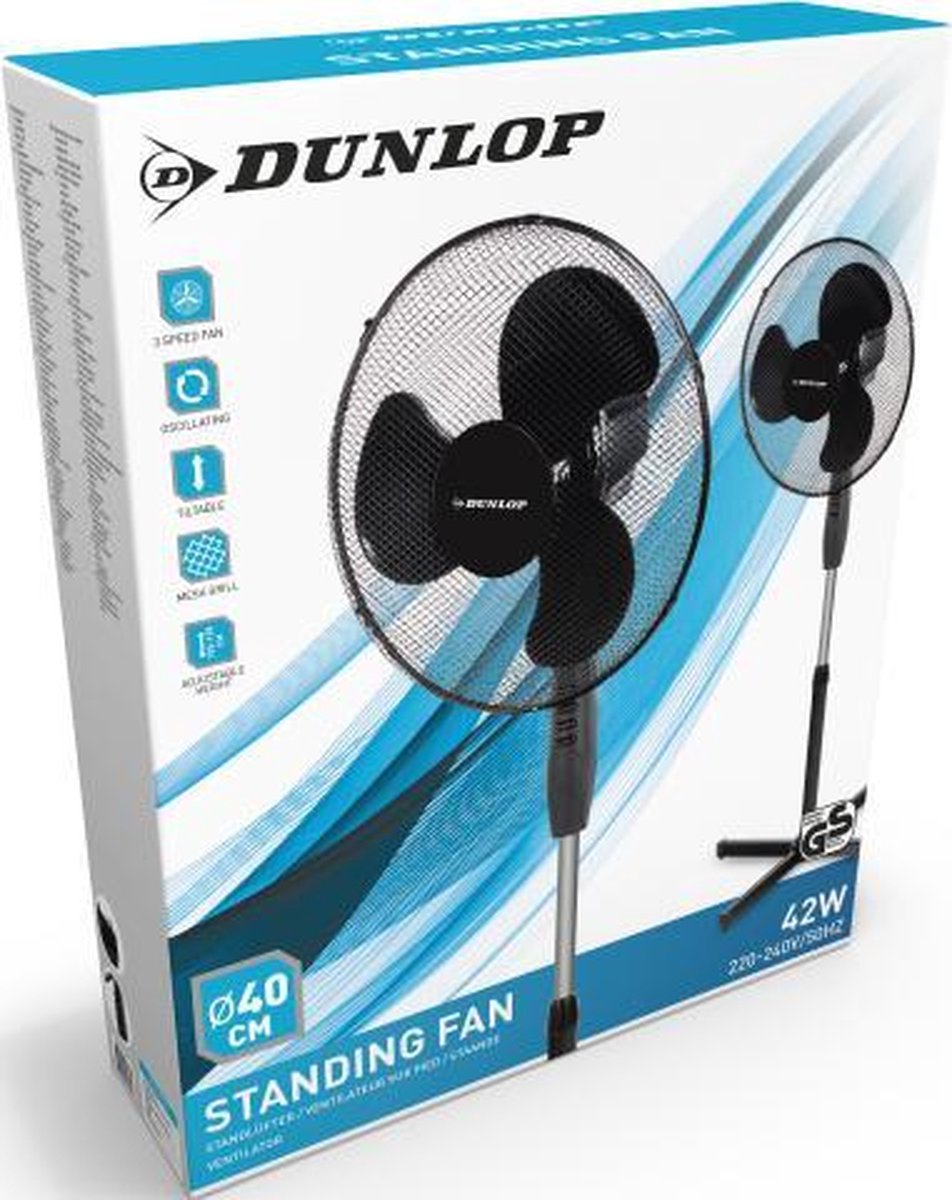 Productbeschrijving: Ben je op zoek naar wat verkoeling tijdens warme dagen en nachten? Deze zwarte vloerventilator van Dunlop biedt het je. Hij heeft een doorsnee van 40 cm en geeft verkoeling zoals jij het wil. Naar wens instellen Je kan deze ventilator namelijk op allerlei punten naar wens instellen. Zo heeft hij 3 snelheden van blazen, van klein briesje tot wat steviger. De blaasrichting bepaal je zelf. Zwenken Je kan het gaasrooster kantelen, de ventilator automatisch laten zwenken (oscilleren) en de hoogte van de ventilator instellen tussen de 105 en 128 cm.