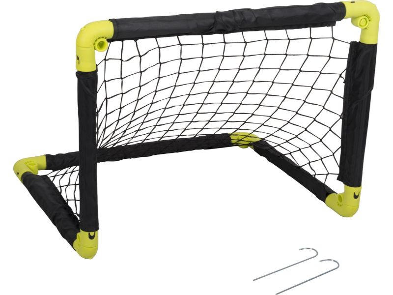 Productbeschrijving: Verbeter je scoringskansen en daag elkaar uit bij een potje voetbal met dit inklapbare voetbaldoel van Dunlop. Je hebt de goal zo opgezet dankzij het handige kliksysteem.