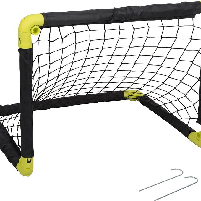 Productbeschrijving: Verbeter je scoringskansen en daag elkaar uit bij een potje voetbal met dit inklapbare voetbaldoel van Dunlop. Je hebt de goal zo opgezet dankzij het handige kliksysteem. Het goaltje is mooi compact: 55 centimeter lang en 44 centimeter hoog en diep.